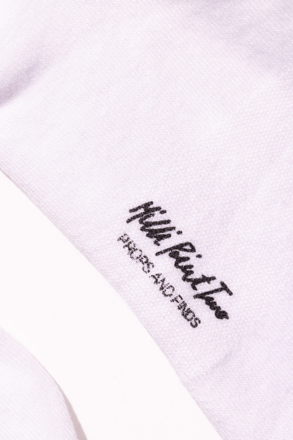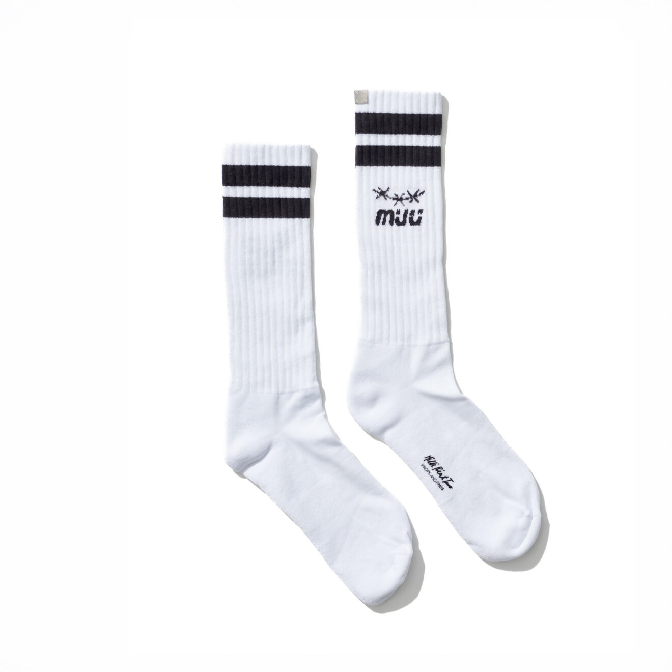 Brushing leg-on-leg in an anxious flurry around the block, whiskering for a novel new light, a body, an object, without anything in sight. This is a pair of high quality, high-count Italian knit cotton blend socks decorated with signature branding, acting as the tube socks of the future. Soft, yet sturdy, will provide comfort in all kinds of work.