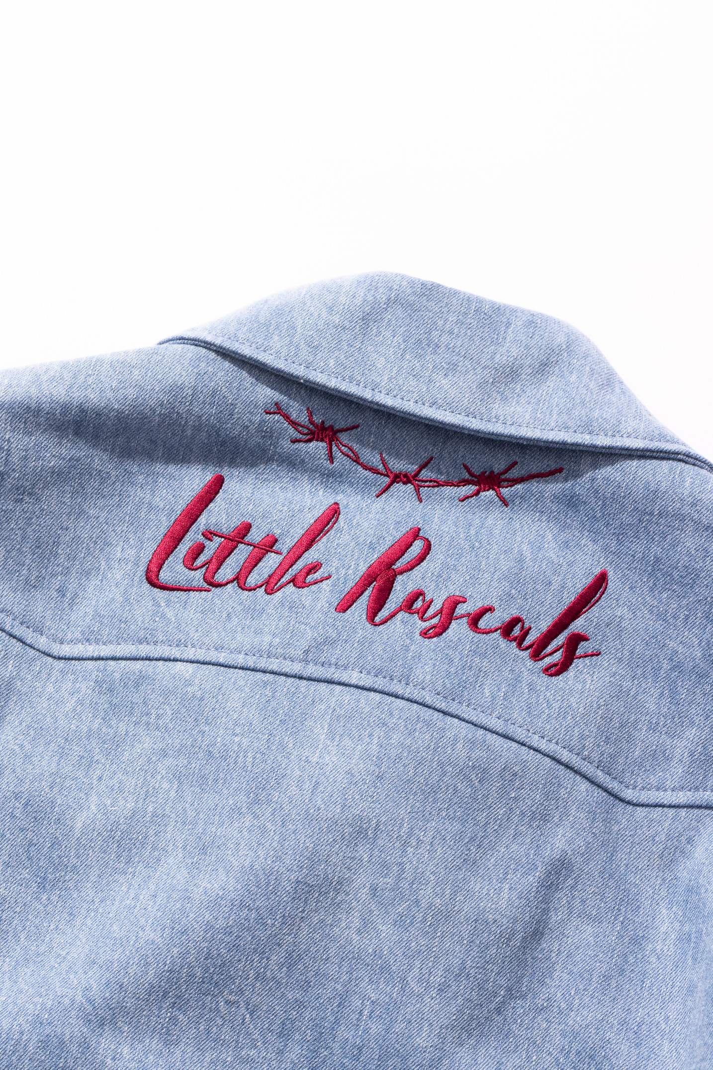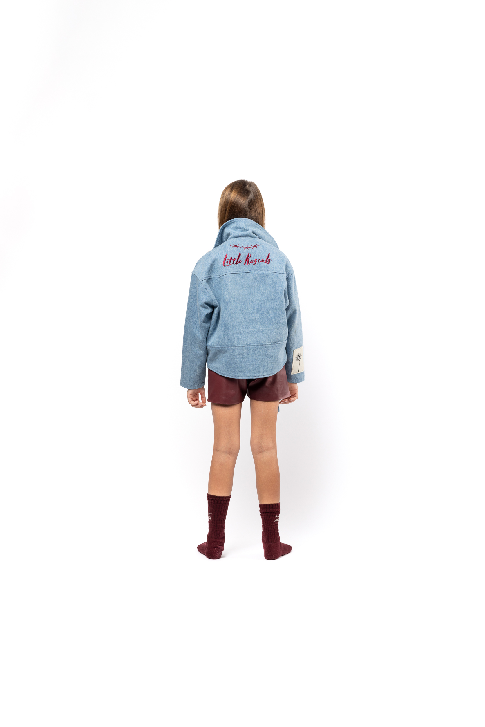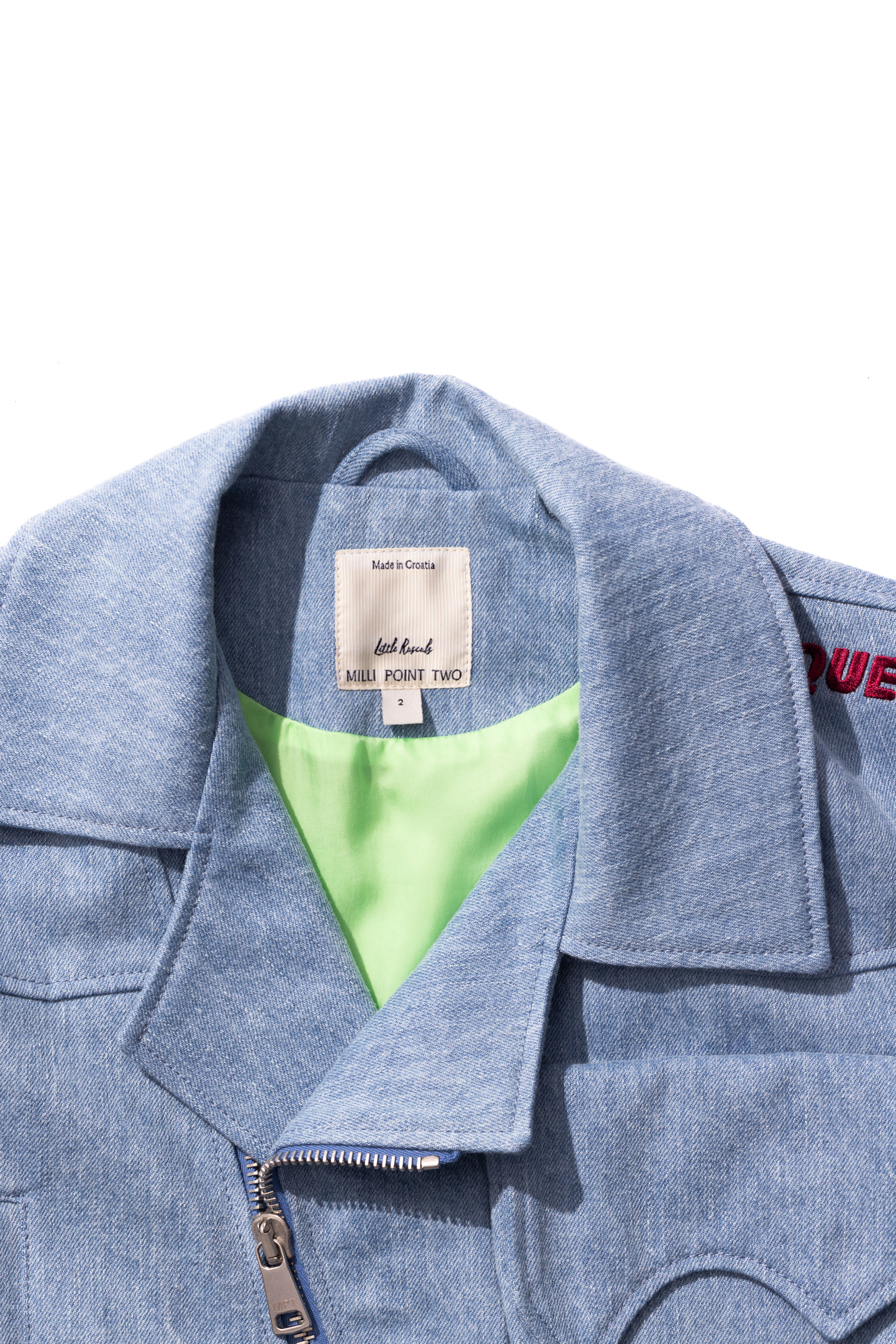 The "Jr." addition symbolizes the garment's shrinking to accommodate even the youngest of wearers. An oversized biker jacket featuring exaggerated versions of typical moto details with biker lapels, a double waistbelt and reinforced back panels, with an oversized external storage pouch. Made from high count Italian denim with a soft, breathable cupro lining and heavy-duty hardware.