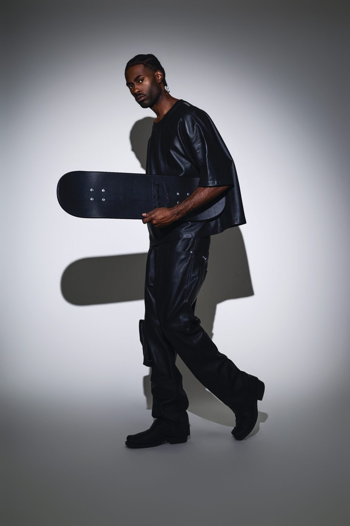 Part of the "Props & Finds" line of limited collectible goods transforming mundane environment into living, kicking valuables. This limited edition skateboard deck is made of a high-quality maple/birch blend coated with a strong layer of 100% Italian Bovina leather. Features a maxi graphic motif on the bottom deck and characteristic embroidery on the face. Comes with a branded custom leather carrier bag.