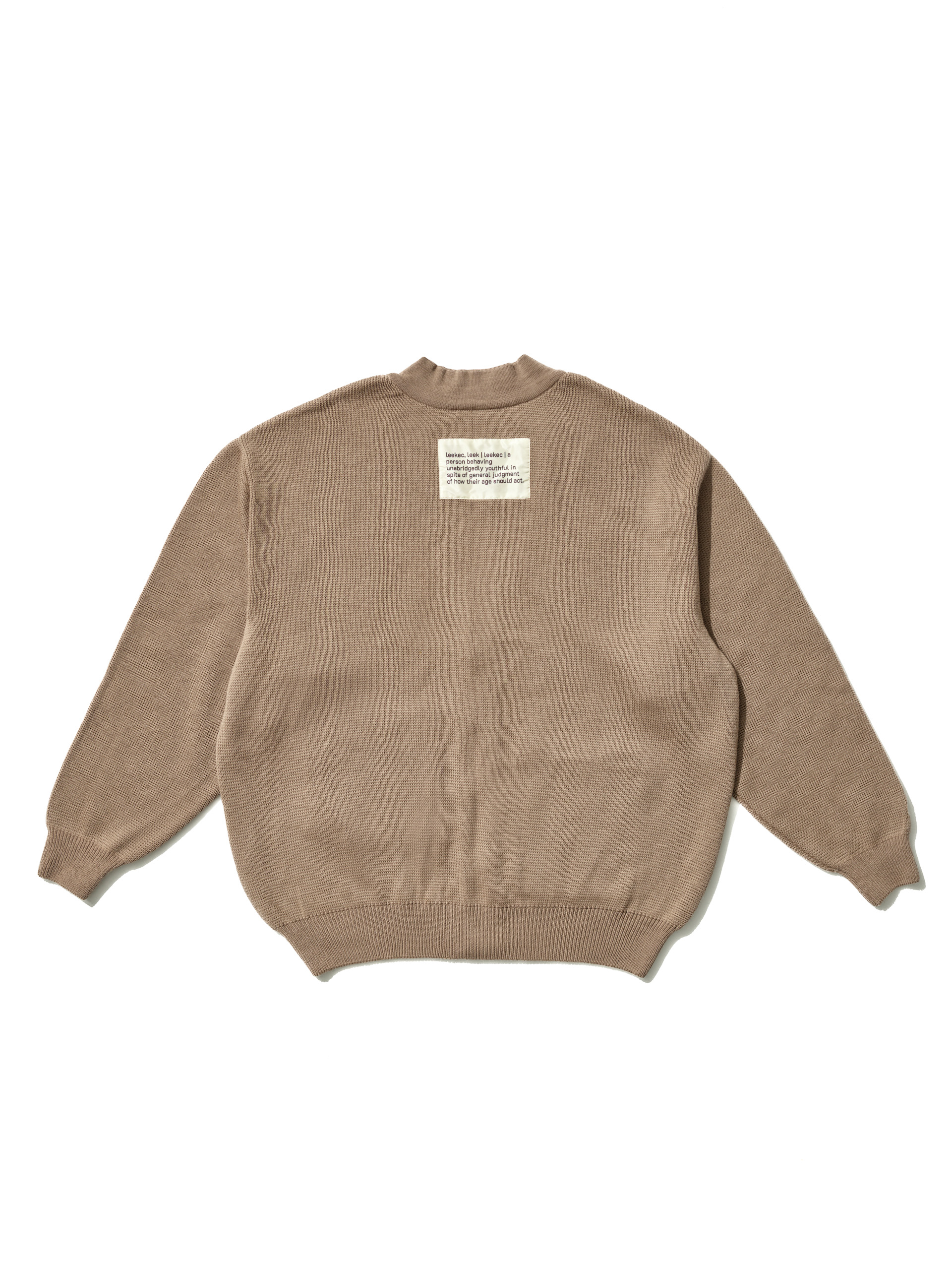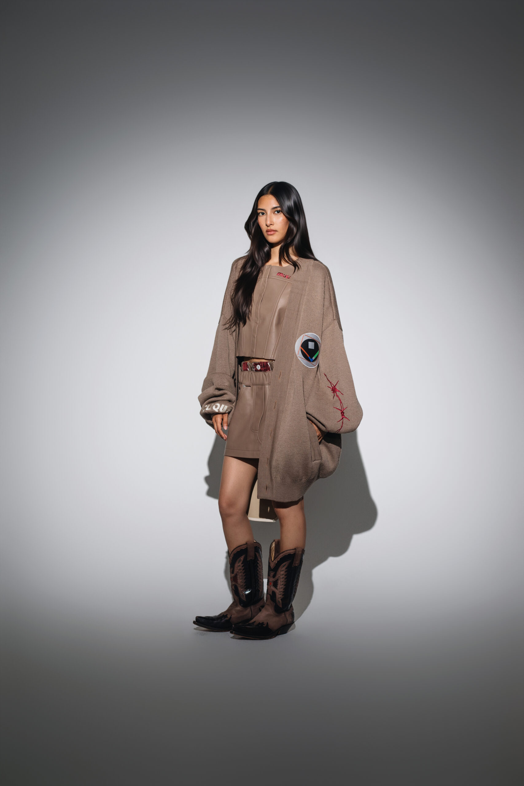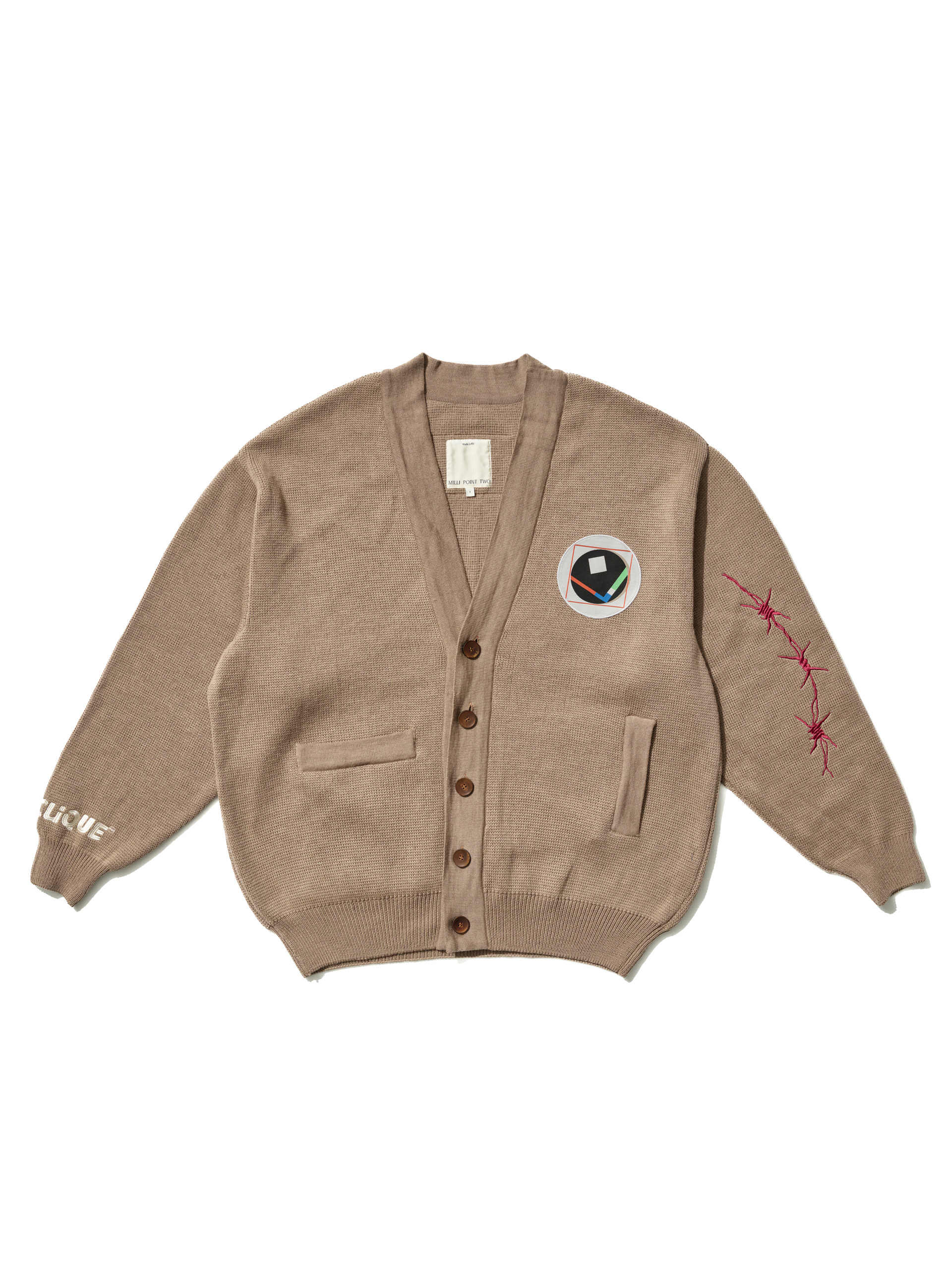 MPT's take on a cozy, fireplace-bound cardigan sweater. Made from a soft, but sturdy Italian alpaca/merino blend, giving the item both heat properties as well as grace. Features an elongated body with long sleeves and multiple printed and patched motifs throughout.