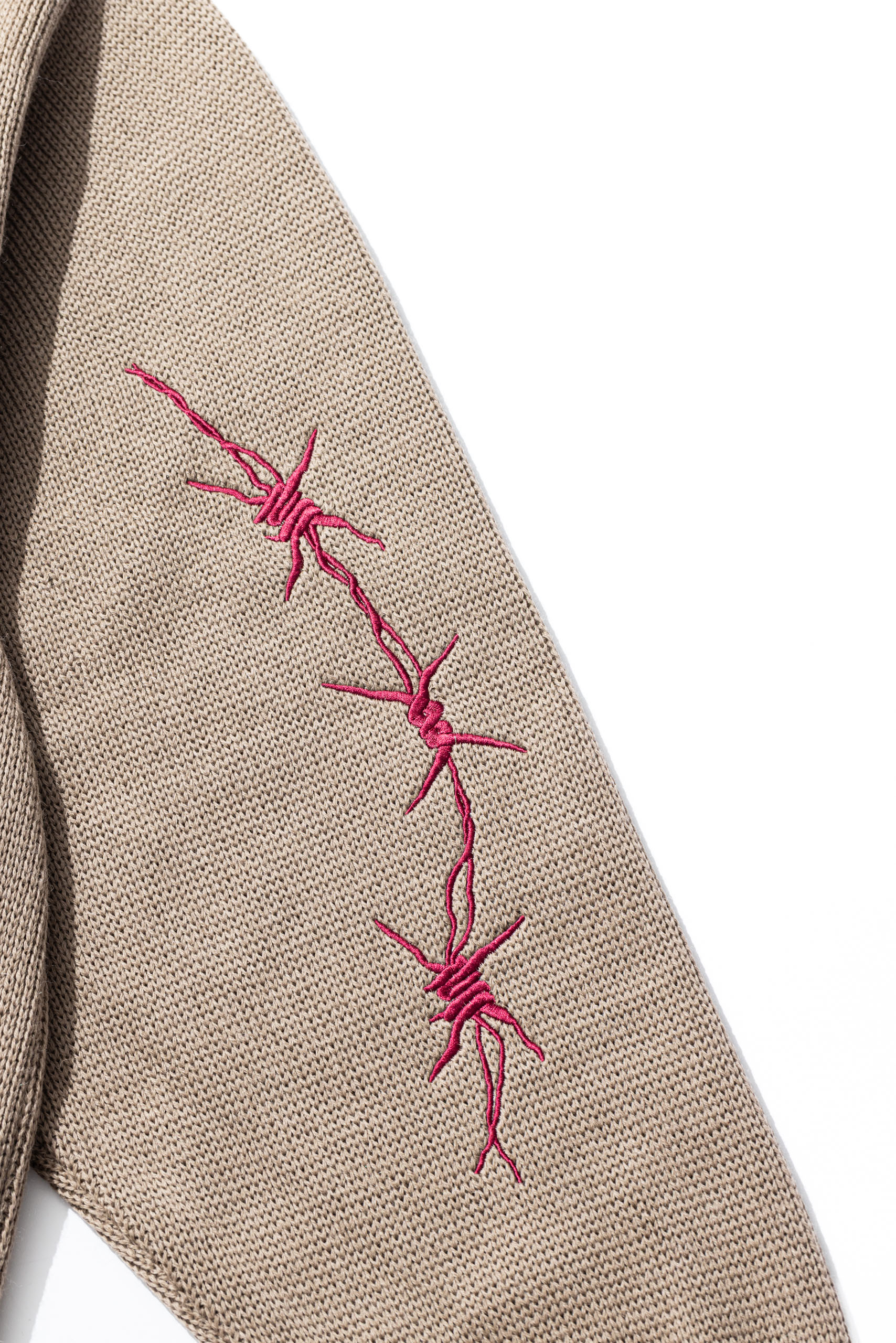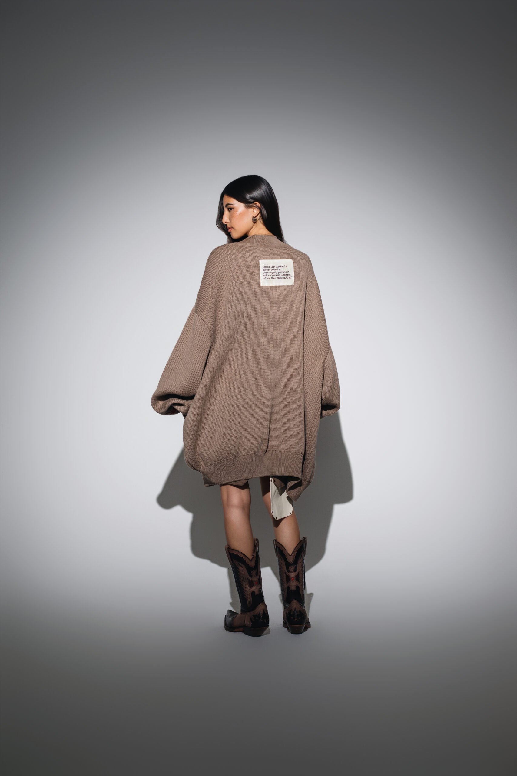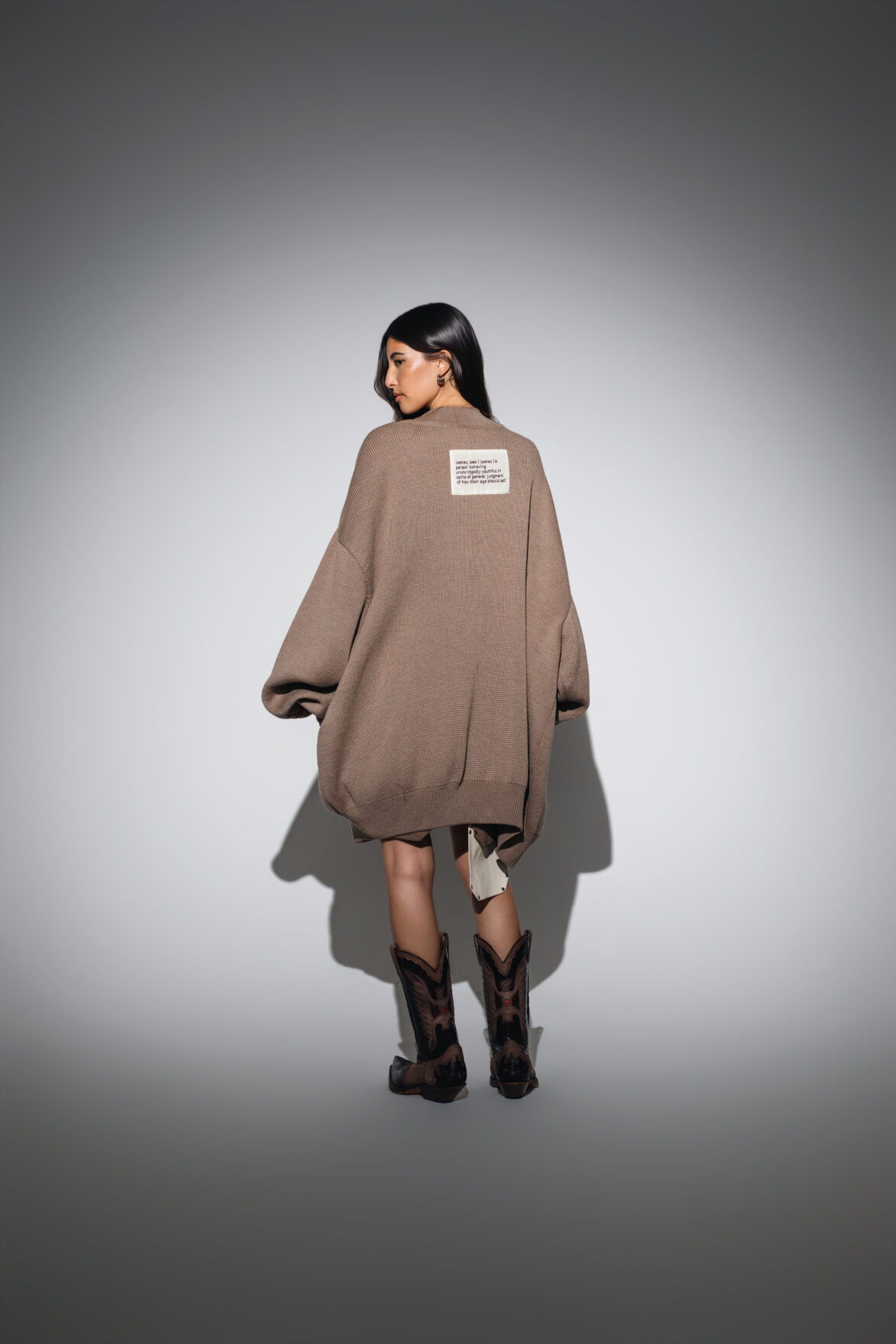 MPT's take on a cozy, fireplace-bound cardigan sweater. Made from a soft, but sturdy Italian alpaca/merino blend, giving the item both heat properties as well as grace. Features an elongated body with long sleeves and multiple printed and patched motifs throughout.