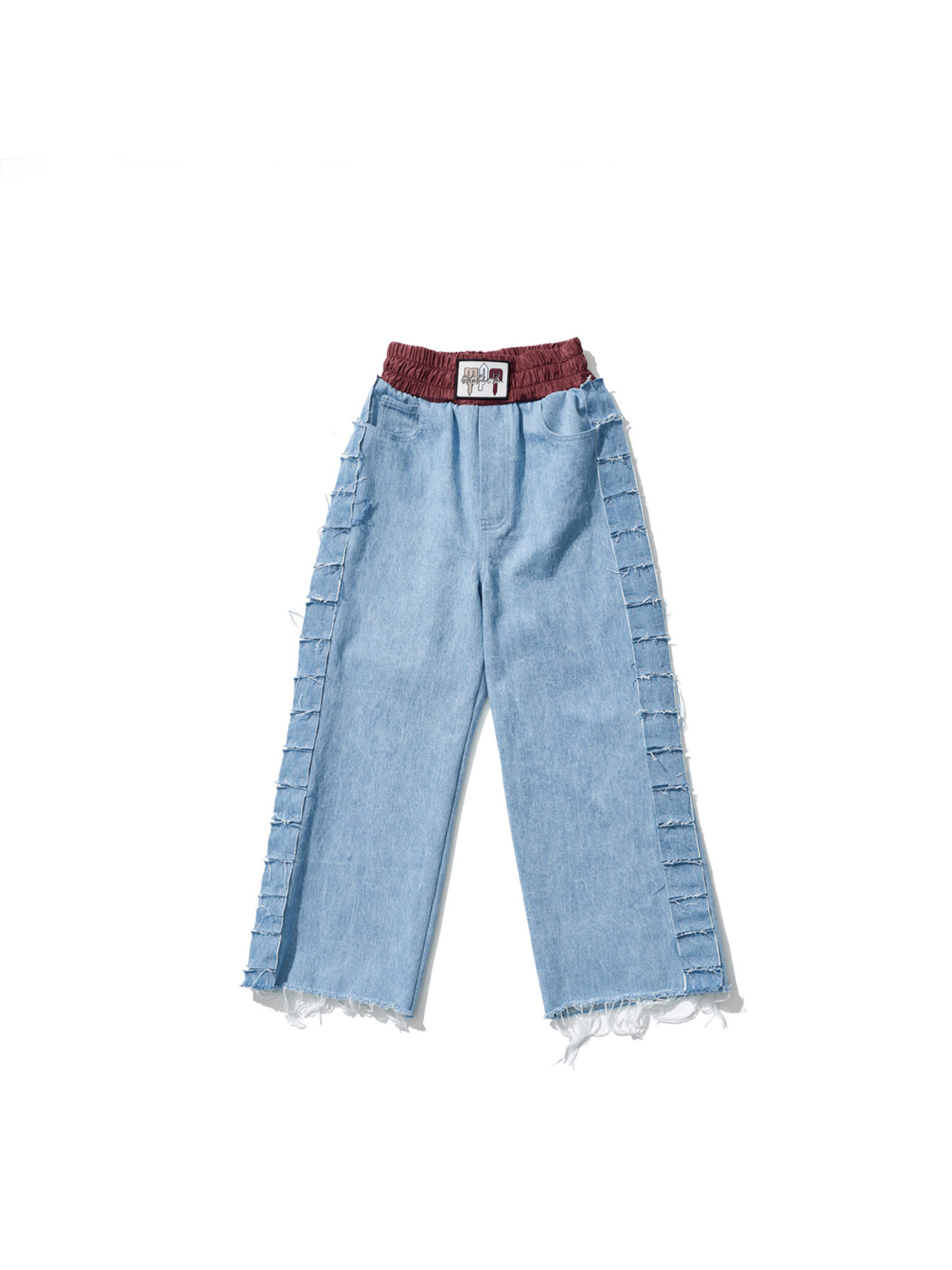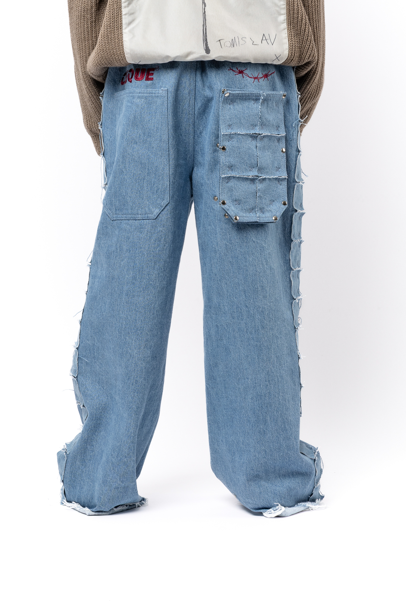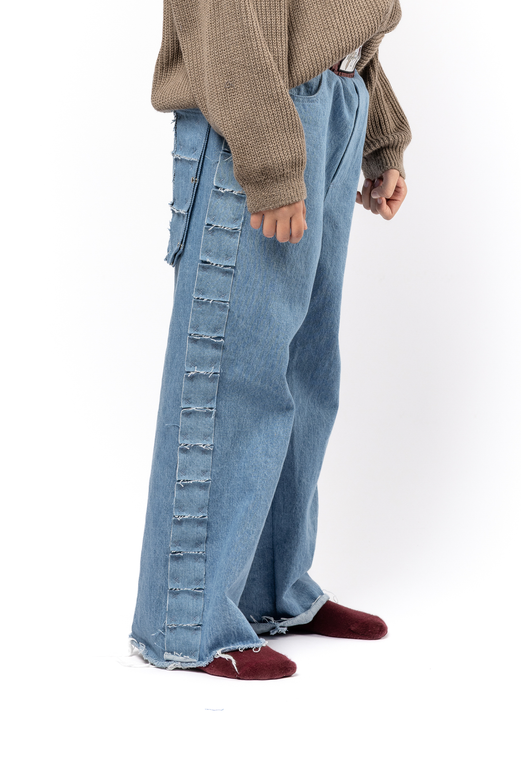 The brand's take on classic American denim jeans featuring an elongated, loose bootcut fit made from 100% Italian denim with an elastic waistband inspired by old boxing gear. Comes with a signature "MPT" jacquard patch in the center and signature embroidery throughout.