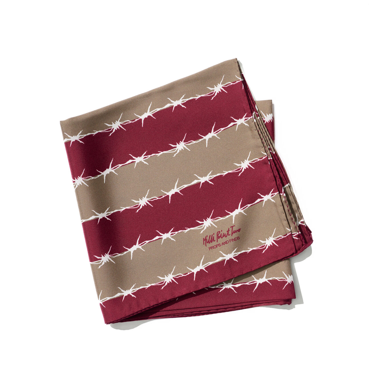 Either hiding the wavy or protecting the precious head, this silk bandana will cover up most of the losses incurred during the day, and spangle with unprecedented smoothness. Made from 100% Italian silk tafetta and featuring the brand's signature barbwire paisley print throughout, in a luxurious taupe hue with chianti detailing.